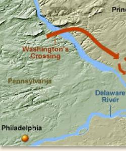 As his troops shivered with hunger and disease, the British and Hessian soldiers were snug in their winter quarters on the NJ side of the Delaware River. On this holiday eve, the enemy feasted on goose and tankards of rum, and the sentry guards were less alert, since they knew the poor condition of the Revolutionary troops, and besides, the river was full of ice. Washington’s many shoeless (“Some of them have tied old rags around their feet”) troops crossed the icy waters in the dead of night in a snowstorm, and left bloody footprints in the snow. Even their musket powder became soaked, so they were told to use their bayonets. About 2,400 men (including 2 future Presidents - James Madison and James Monroe - as well as future Supreme Court Justice John Marshall and famous rivals Aaron Burr and Alexander Hamilton) made it across. They caught the Brits and Hessians in a drunken slumber; the Hessians standing guard in the storm thought the first Continentals were their relief party. The Revolutionaries managed to get them to surrender in 40 minutes. No Americans were killed, though a couple had frozen to death. They captured over 900 prisoners, 1,000 muskets and 40 horses.
